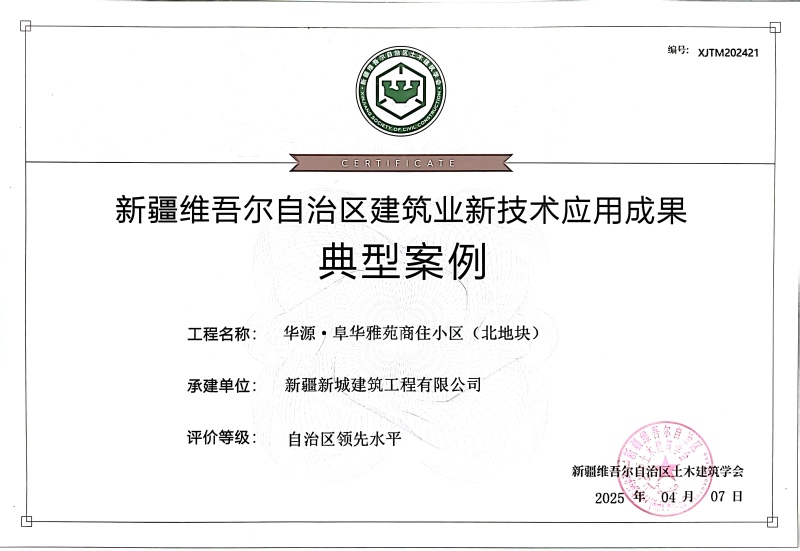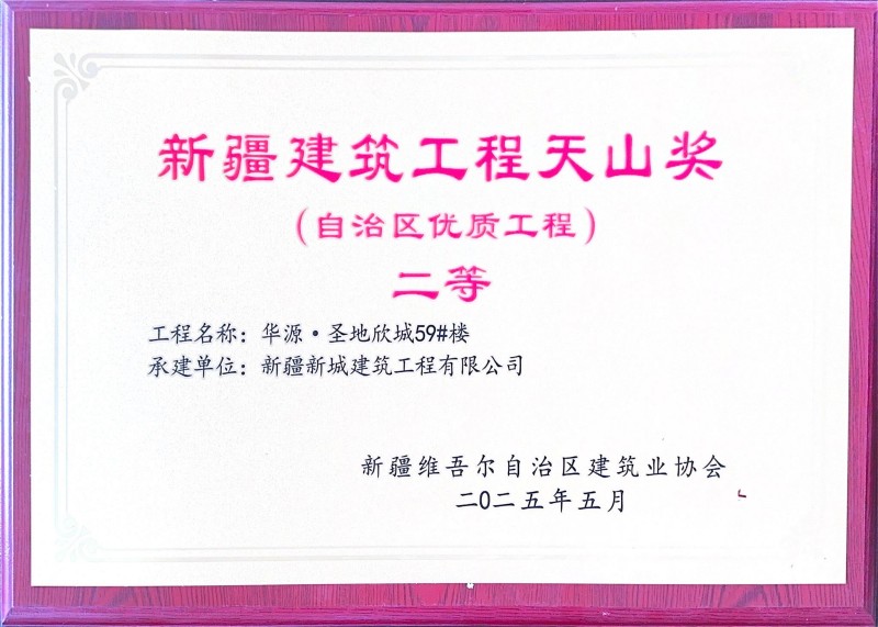 捷报频传,荣誉纷至!2025年,新城建筑公司以对卓越品质的执着坚守与精益求精的工匠精神,在全疆多地屡创佳绩,一批标志性工程脱颖而出,成为行业标杆。山水华府建设项目、昌吉高新区新型材料科技示范园标准化厂房建设项目成功获评“自治区标准化工地”;华源·圣地欣城59#、40#楼及阜华雅苑商住小区32号住宅楼项目荣获“新疆建筑工程天山奖(二等)”,以扎实过硬的工程品质赢得权威认可。
