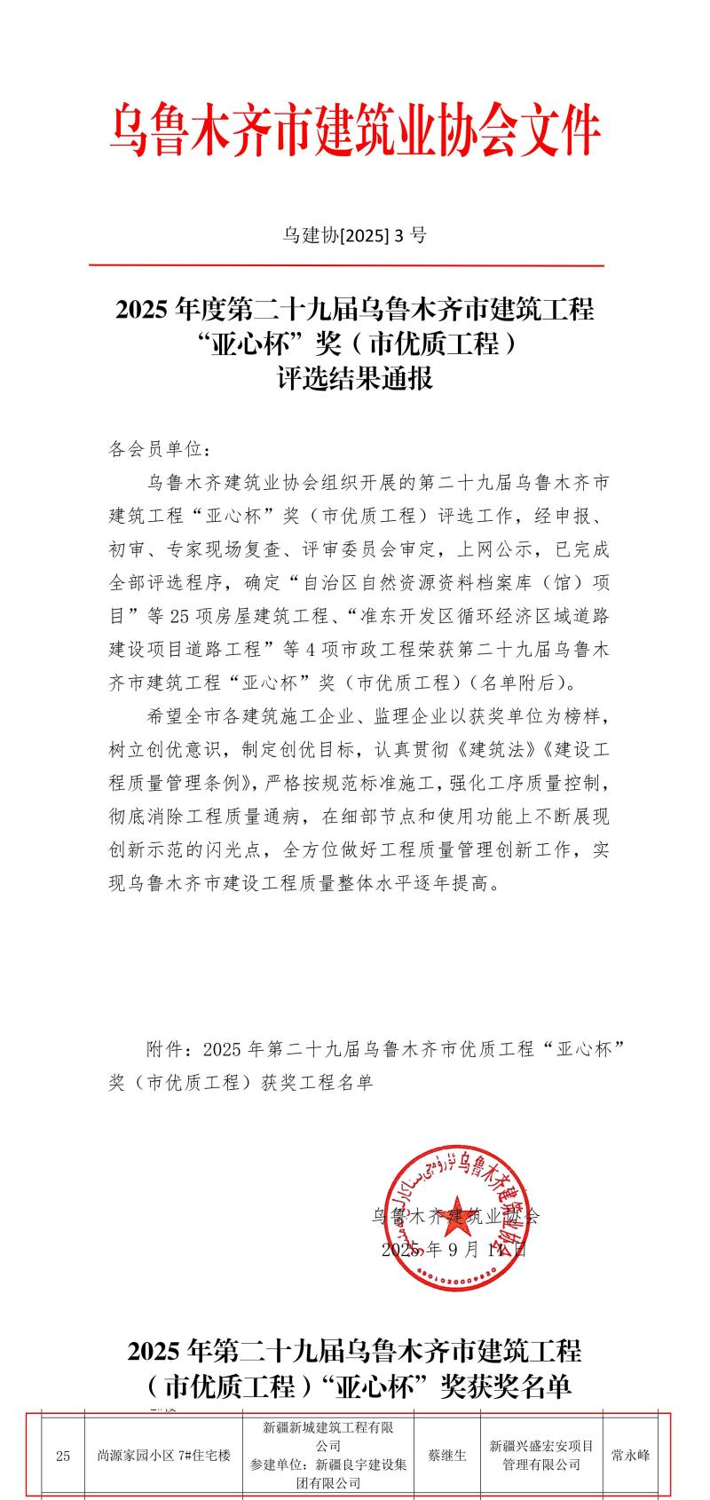 ——新城建筑公司2025年斩获全疆多项优质工程奖