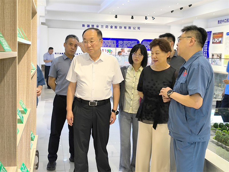 6月24日下午,山东药监局党组书记、局长李涛一行深入华源银朵兰药业进行参观调研活动,新疆药监局党组书记、局长等陪同调研。银朵兰药业总经理黄磊、总工程师陈菊等热情接待并进行了深入的交流。